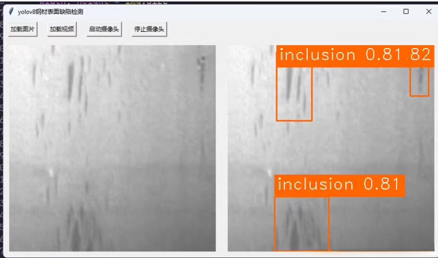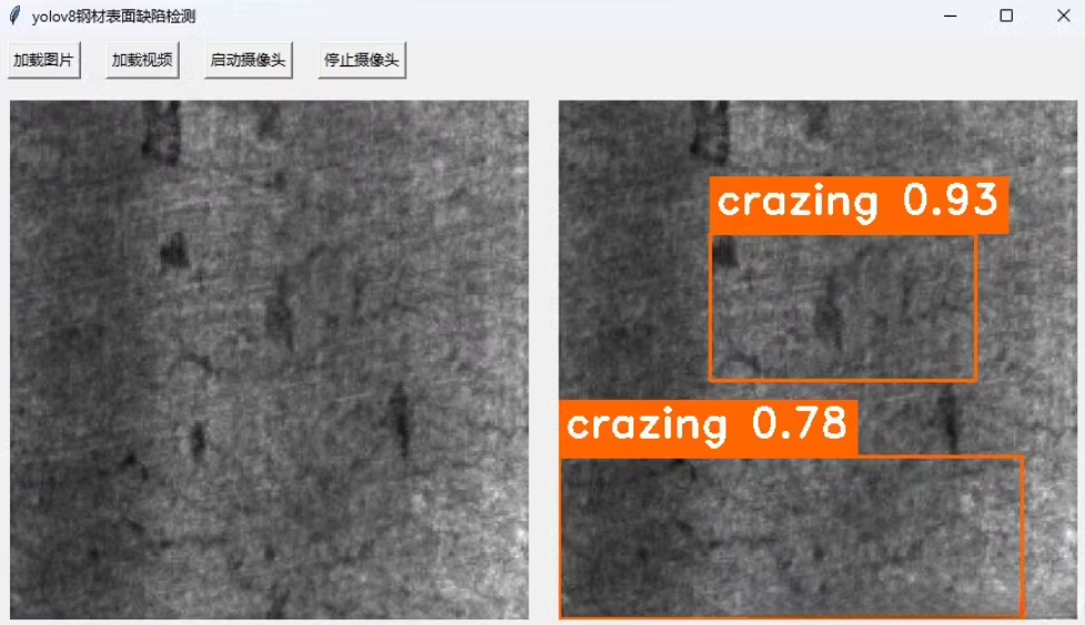 可以通过YOLOv8组织训练数据集来完成钢材表面缺陷检测任务,并且可以通过OpenCV与Tkinter结合开发一个GUI应用程序来进行图像、视频以及实时摄像头上的缺陷检测。