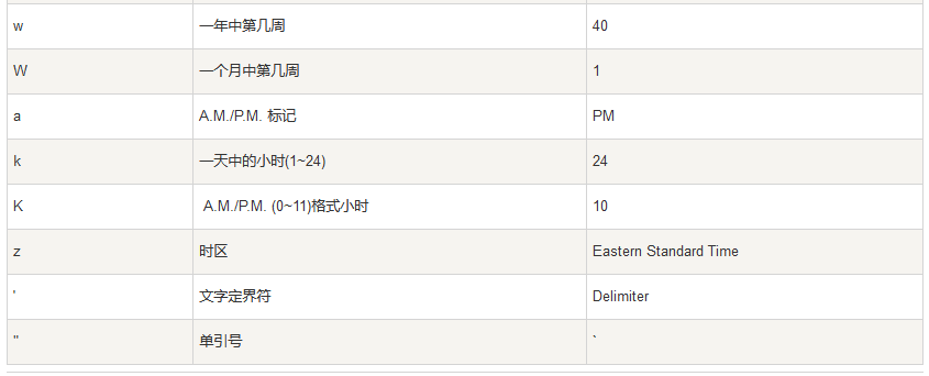 定义日期格式的转换符可以使日期通过指定的转换符生成新字符串。这些日期转换符如下所示: