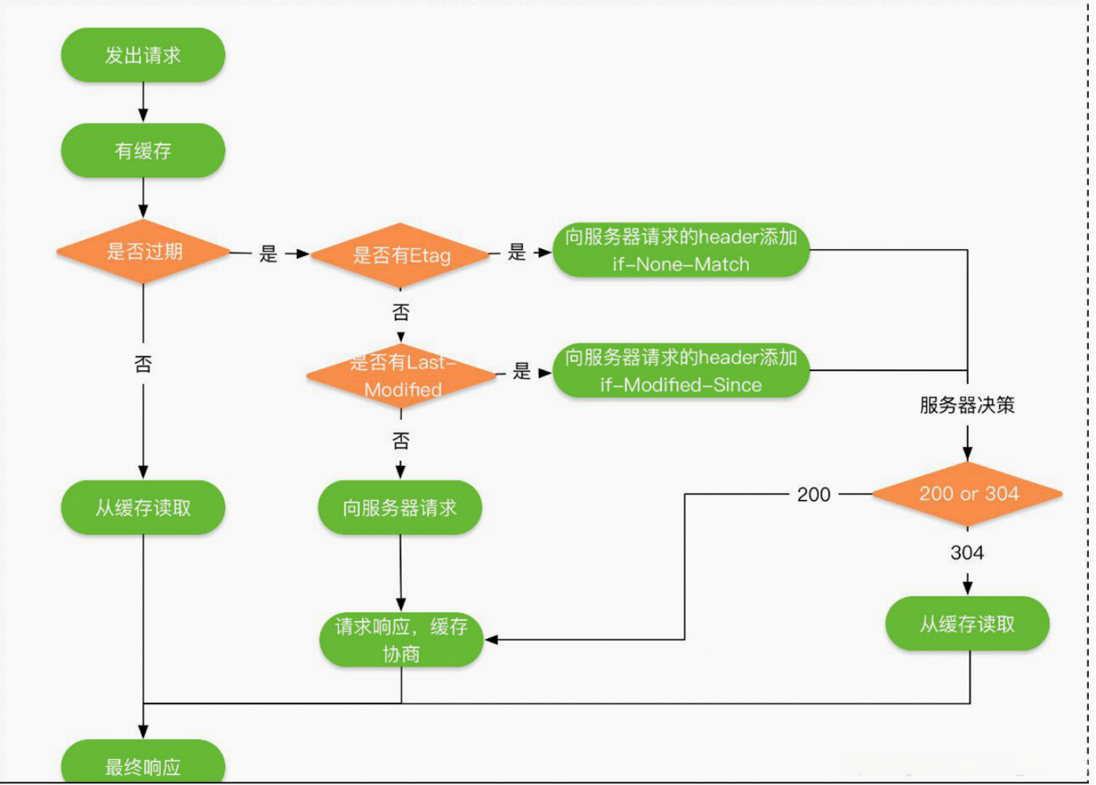依赖于请求和响应 header 里的参数类实现的,最终决定从缓存中取,还是从服务端重新拉取,HTTP 的缓存机制的流程如下所示:包括强制缓存和对比缓存。时间是强制缓存,标识符是对比缓存。