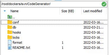 - /root/dockers/svn为宿主机的文件目录,/var/opt/svn为容器内的文件目录