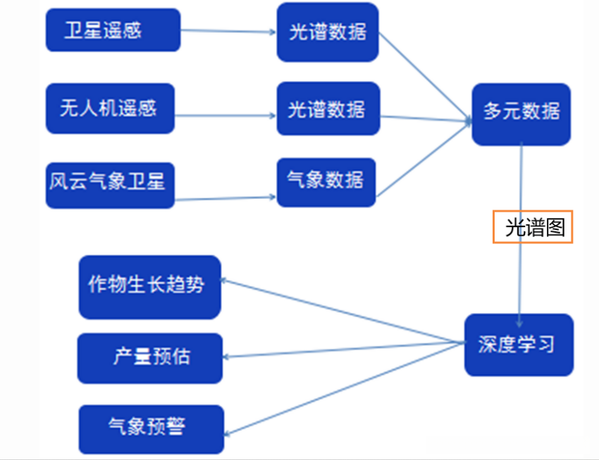 遥感技术是指一种远距离的感知工具。它基于电磁波、可见光以及红外线等传感器对目标作物进行探测与识别。遥感技术广泛应用于卫星、无人机以及手持设备这些不同类型的设备上。通过分析获取的数据(如光谱图),我们可以运用图像识别技术来预测作物产量。这种方法能够获取作物的叶面积指数、作物类型以及耕地的地理信息等关键数据。
