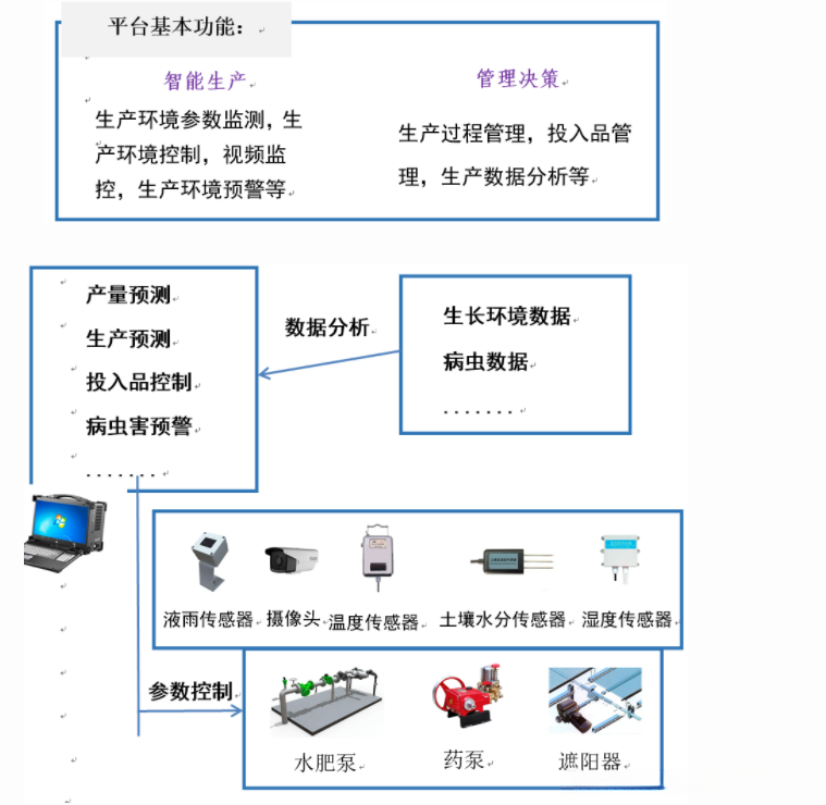 利用人工智能技术对室内外温度湿度进行精确预测,并采用冷光LED光源作为作物光照来源。该系统配备了循环风机空调系统、二氧化碳施肥系统以及营养液循环系统等关键设备,在满足植物生长发育所需基础要素的同时能够实现对作物生长发育所需基础要素的全程自动化调节,并具备一定的作物种植区域自动管理功能。该套方案不仅能够有效提升农业生产效率,并且使其在提高农业生产效率方面展现出显著优势。