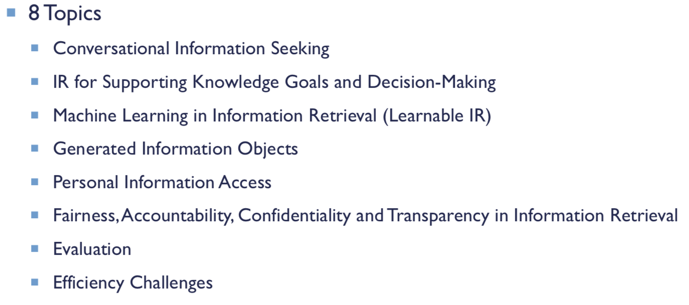 SIGIR作为信息检索领域的最高水平国际大会,在其 Topics 中可以看出该领域的发展动态。