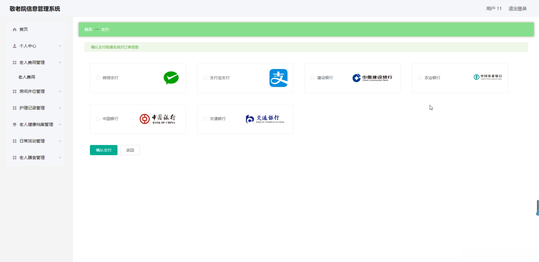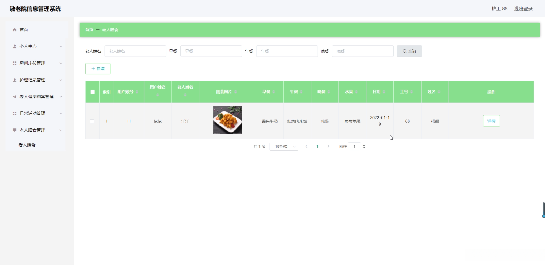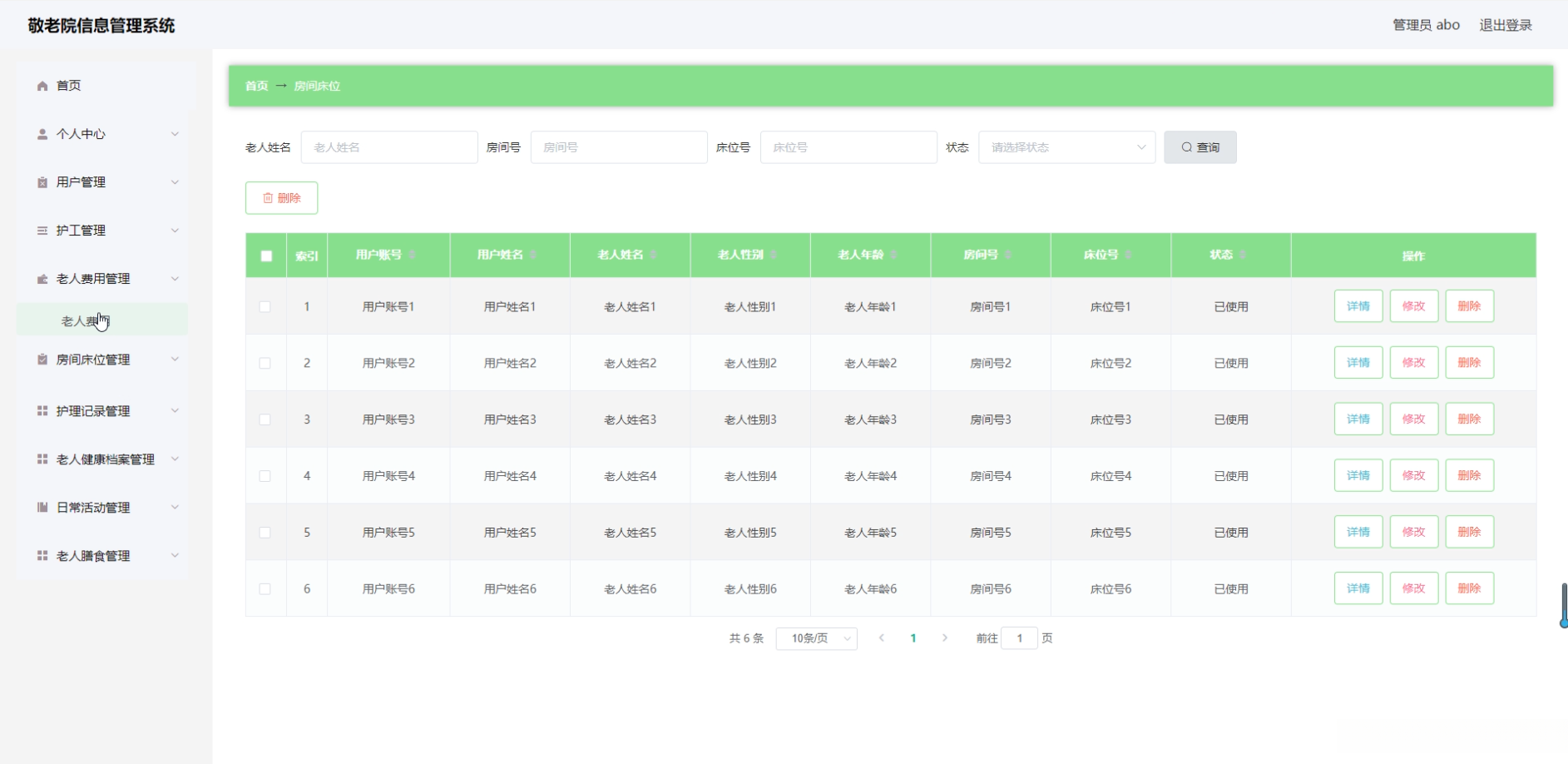 通过本项目的实施, 预计将会完成一款功能完善、易于使用的敬老院信息管理系统. 该系统不仅能够显著提升敬老院的管理效率和服务质量, 还能为老年人提供更加舒适的居住环境.