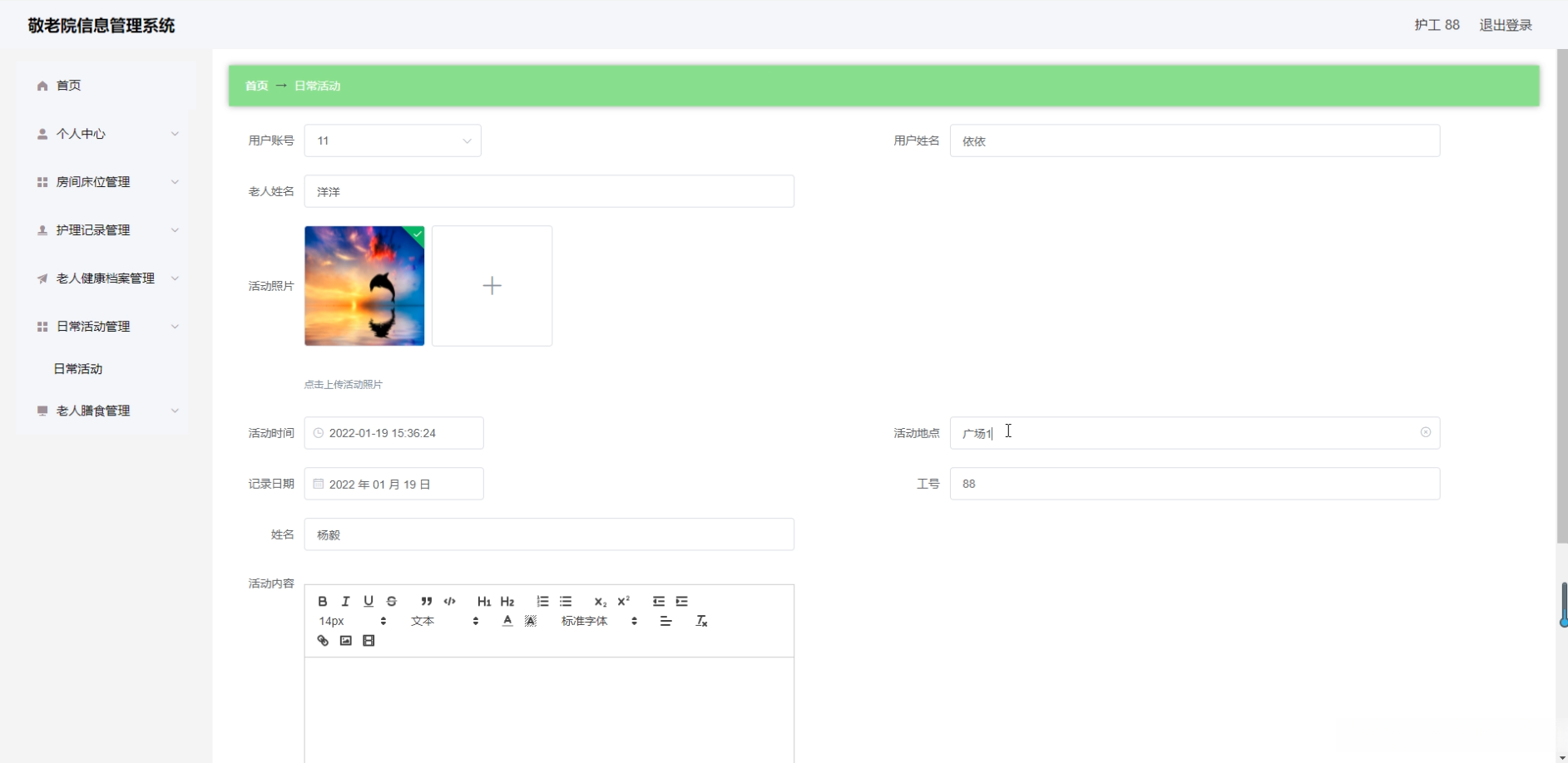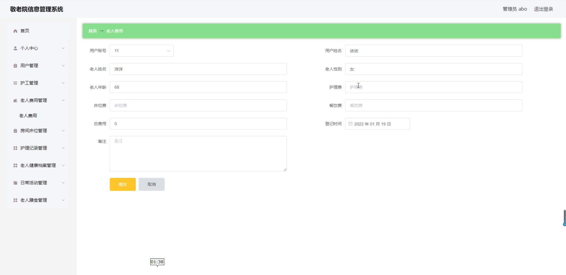 随着人口老龄化的程度日益加深, 敬老院已成为老年居民生活照料的核心机构, 其运营效能和服务水平逐渐成为社会各界关注的焦点. 为了提升敬老院的服务质量, 保障老年居民的生活品质与安全福祉, 开发一套专业的养老服务中心管理平台具有重要意义.