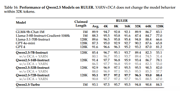 通过运用这两项创新策略,模型在处理序列长度方面的能力得到了极大提升,具体表现为序列长度容量提高了四倍之多。对于Qwen2.5 - Turbo这个模型来说,它能够处理的词元数量可以多达100万个,而其他模型(除Qwen2.5 - Turbo之外的那些之前提到的模型变体)也能够处理多达131072个词元了。更为重要的是,这些策略带来的好处不仅仅局限于让模型能够处理更长的序列,还体现在对不同长度序列处理的整体质量把控上。一方面,通过降低困惑度(困惑度是衡量语言模型对文本预测准确程度的一个指标,困惑度越低说明模型对文本的把握越好),改善了对长序列进行建模的效果,也就是让模型在处理长文本时能更准确地理解其语义、逻辑等内容;另一方面,在提升长序列处理能力的同时,并没有牺牲模型原本在处理较短序列时的出色性能,保证了不管是面对长文本输入还是短文本输入,模型都能输出质量较为稳定、可靠的结果,维持了在不同输入长度情况下的处理效果一致性。