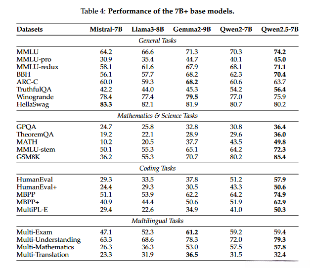通过上述一系列技术手段,成功构建了一个规模更大(从7万亿词元扩展到18万亿词元)且质量更高的预训练数据集,为Qwen2.5模型提供了更坚实的数据基础,有助于其在各项任务中展现更优异的性能。这个更大规模的数据集意味着模型在预训练过程中有更多的数据可供学习,能够捕捉到更广泛的语言模式、知识信息和逻辑关系;更高质量的数据则确保模型学习到的信息更加准确、有用,减少错误或低质量信息对模型学习的干扰,从而全面提升模型的性能表现。