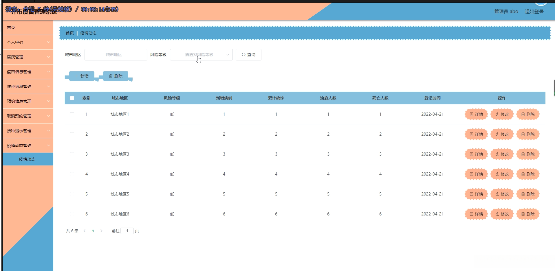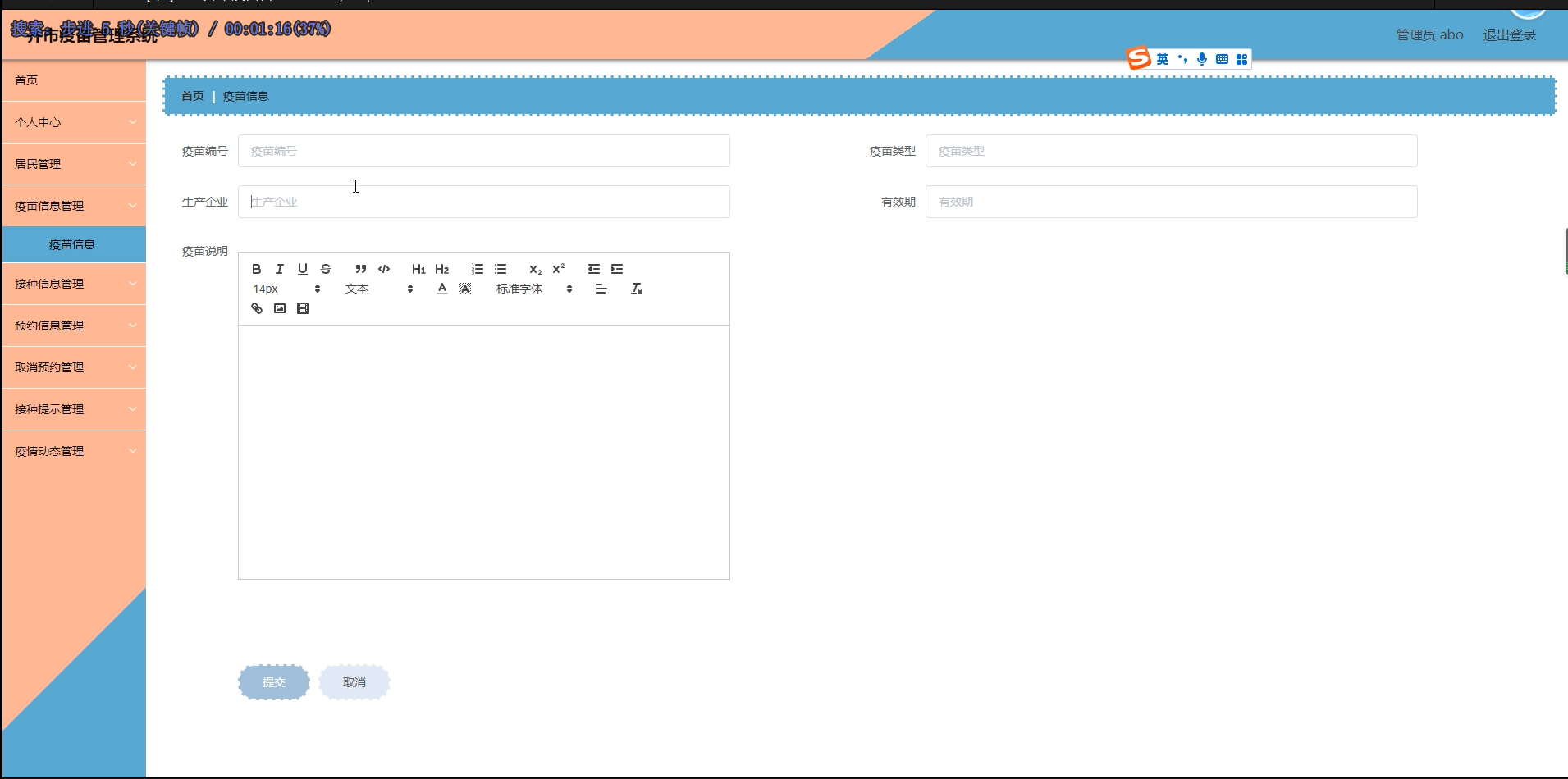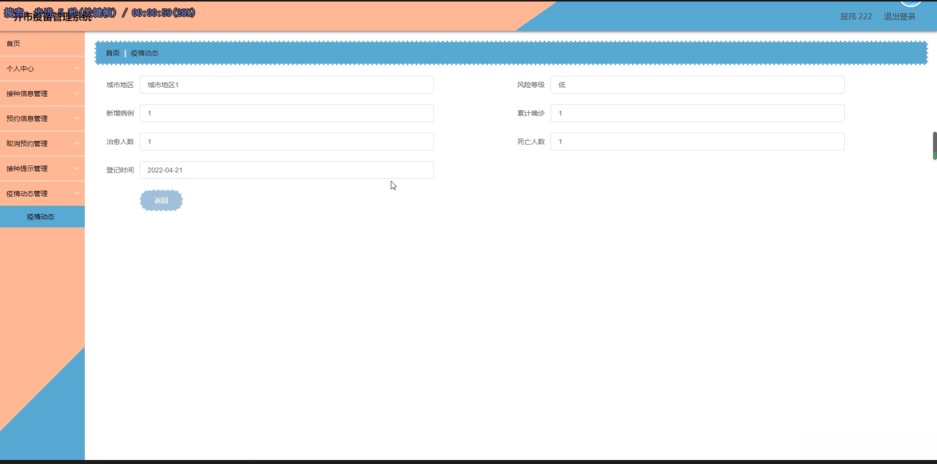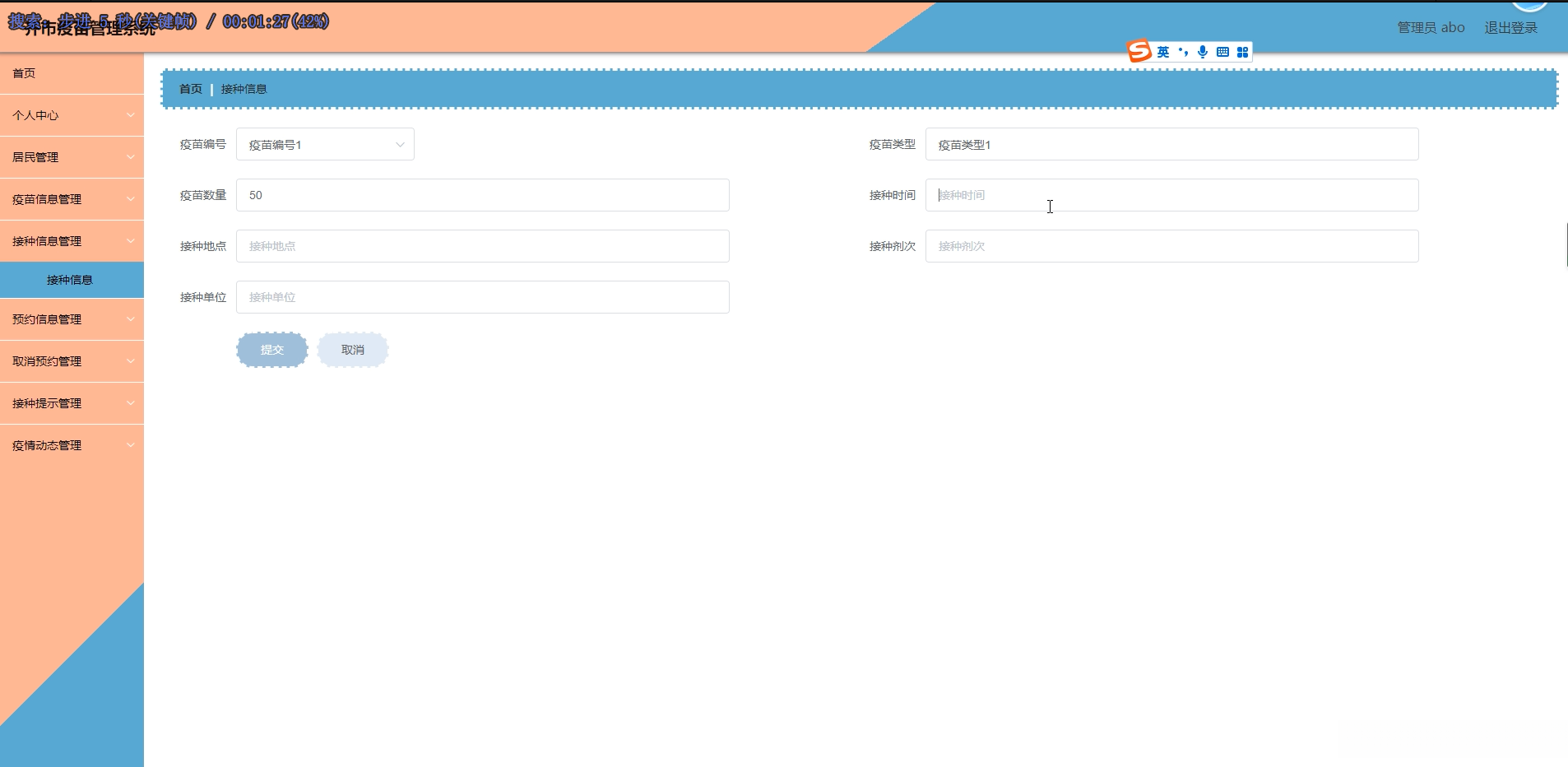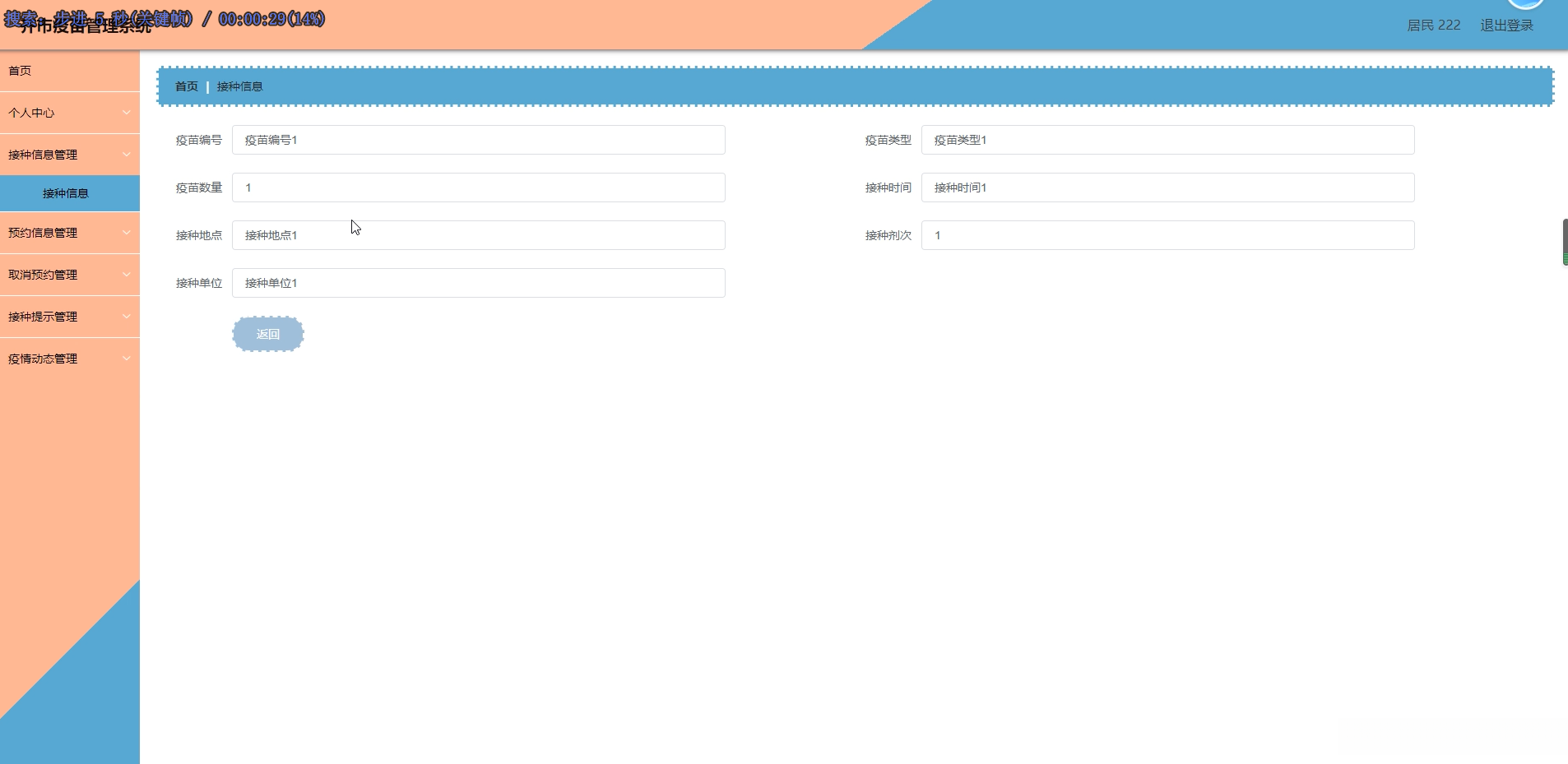 系统内容:居民,疫苗信息,接种信息,预约信息,取消预约,接种提示,疫情动态