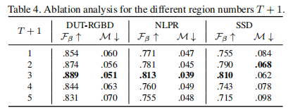 对于depth decomposition,the raw depth map is decomposed into T + 1 regions with the following steps:First, we quantize the raw depth map into the depth histogram, and choose the T largest depth distribution modes (corresponding to the T depth interval windows) of the depth histogram. Then, using these depth interval windows, the raw depth map can be decomposed into T regions, and the remaining part of the histogram naturally forms the last region, as shown in Fig. 3(a). Finally, each region is normalized into [0,1] as a spatial attention mask for the subsequent process.(简单来说,根据深度图的直方图将其分为T+1个区域,然后对每一个区域进行normalized作为空间注意力mask。)