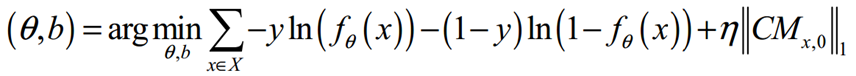 通过Adam优化器最小化交叉熵损失函数,并对反例应用L1正则化。