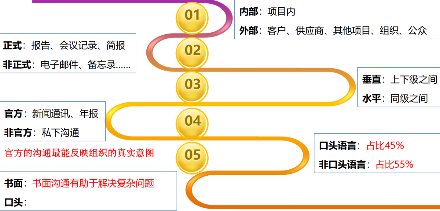 ⚫ 项目沟通管理的核心概念----沟通的划分维度(P361)