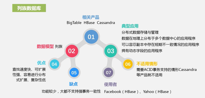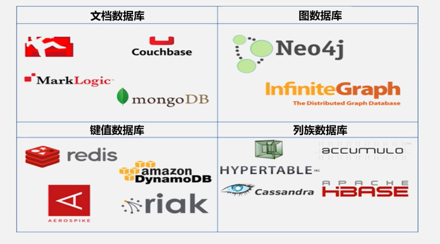 可以分为四大类产品:键值数据库,列族数据库,文档数据库,图数据库