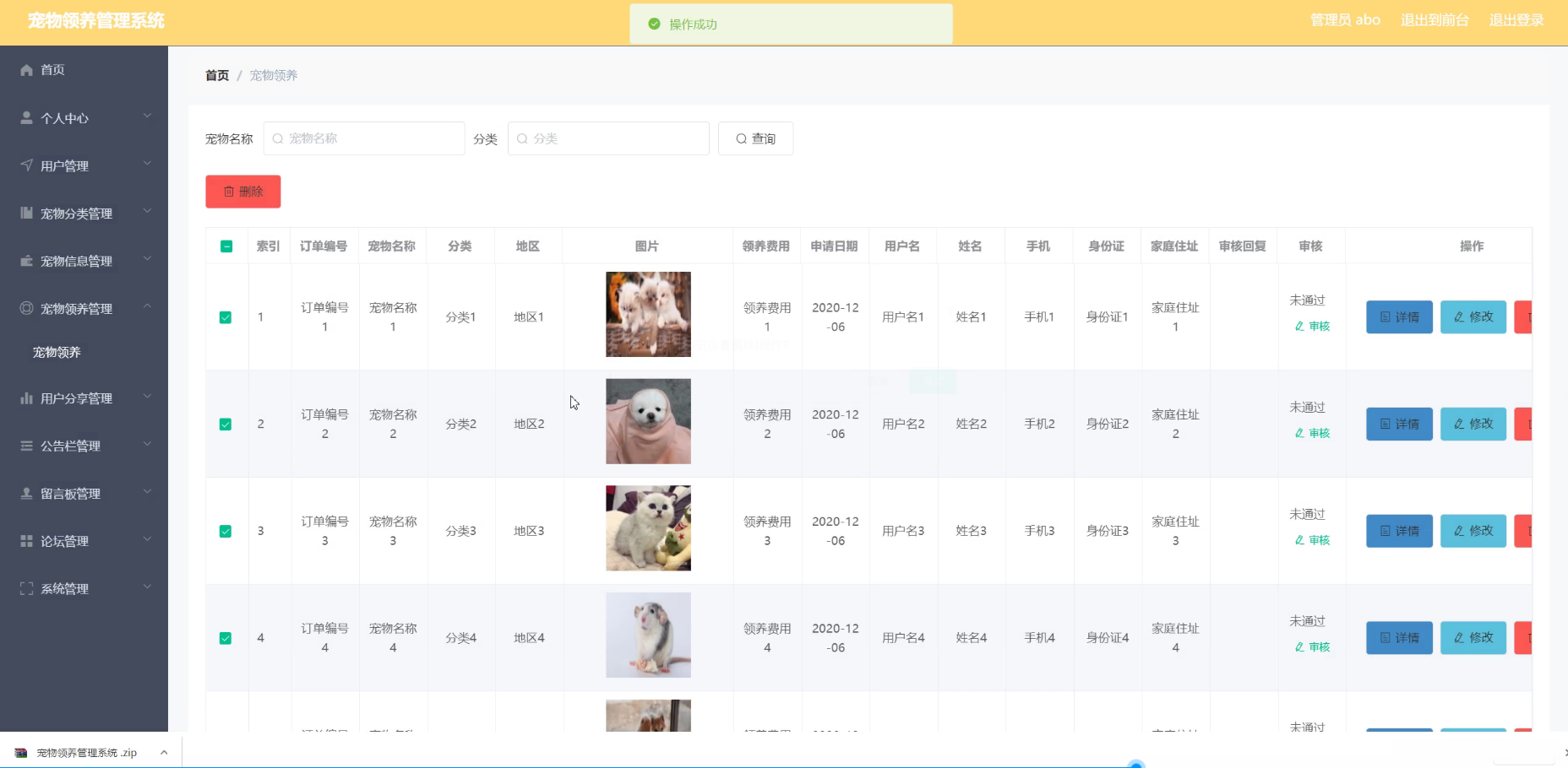 本研究的核心在于通过建立宠物管理系统来显著提高宠物行业内的管理效能和服务水平。该系统不仅具备对宠物相关信息实施全方位管理的能力,并且能够有效整合各项关键数据要素。此外,在功能设计上还特别注重用户体验,在提供基础信息记录的同时还加入了健康档案跟踪模块以满足专业需求。基于此,在实际应用中可帮助相关机构更高效地完成日常运营工作并为其提供专业的技术支持服务