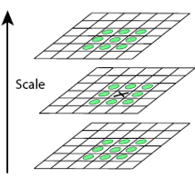 当Hessian矩阵的discriminant达到局部最大值时, 通过确定当前区域与周围区域在亮度上呈现明显的差异性特征来进行关键点位置的精确识别.