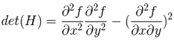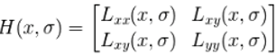 利用特定核间的卷积运算来求取二阶偏导数。利用特定核间的卷积运算来求取二阶偏导数后,则可以依次求得H矩阵中的三个元素Lxx、Lxy和Lyy,并进一步推导得到H矩阵: