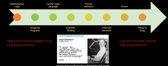 诗歌等高表达性(浓缩),但是精度和可用性差,相反逻辑符号等表达性差但是易于使用,精度高