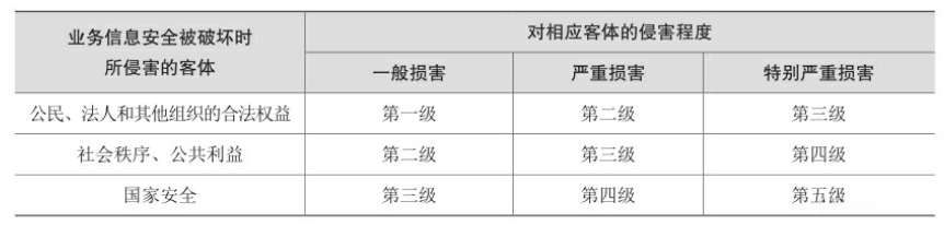 基于系统服务遭受破坏时所涉及的客体及其影响程度的基础上,借助表格的形式可明确得出系统的安全保护等级