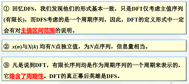 只有在有限个位置上有定义的周期序列才有意义;对于数字信号处理来说;我们通常将一个N点有限长序列视为其对应周期为N的无限长周期序列的一个完整周期段;从而可以通过离散傅里叶变换(DFS)来计算其频域特性。