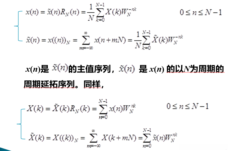 令x(n)为有限长度的序列,在满足条件0≤n<N−1时具有非零值;也可以视为具有周期N的周期序列