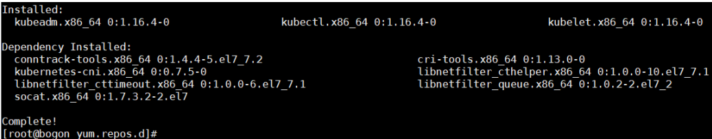 命令:yum install -y kubelet-1.16.4 kubeadm-1.16.4 kubectl-1.16.4