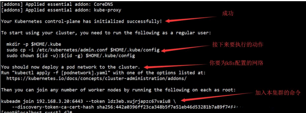 注意master节点初始化完成之后会有其他节点加入集群的提示命令。