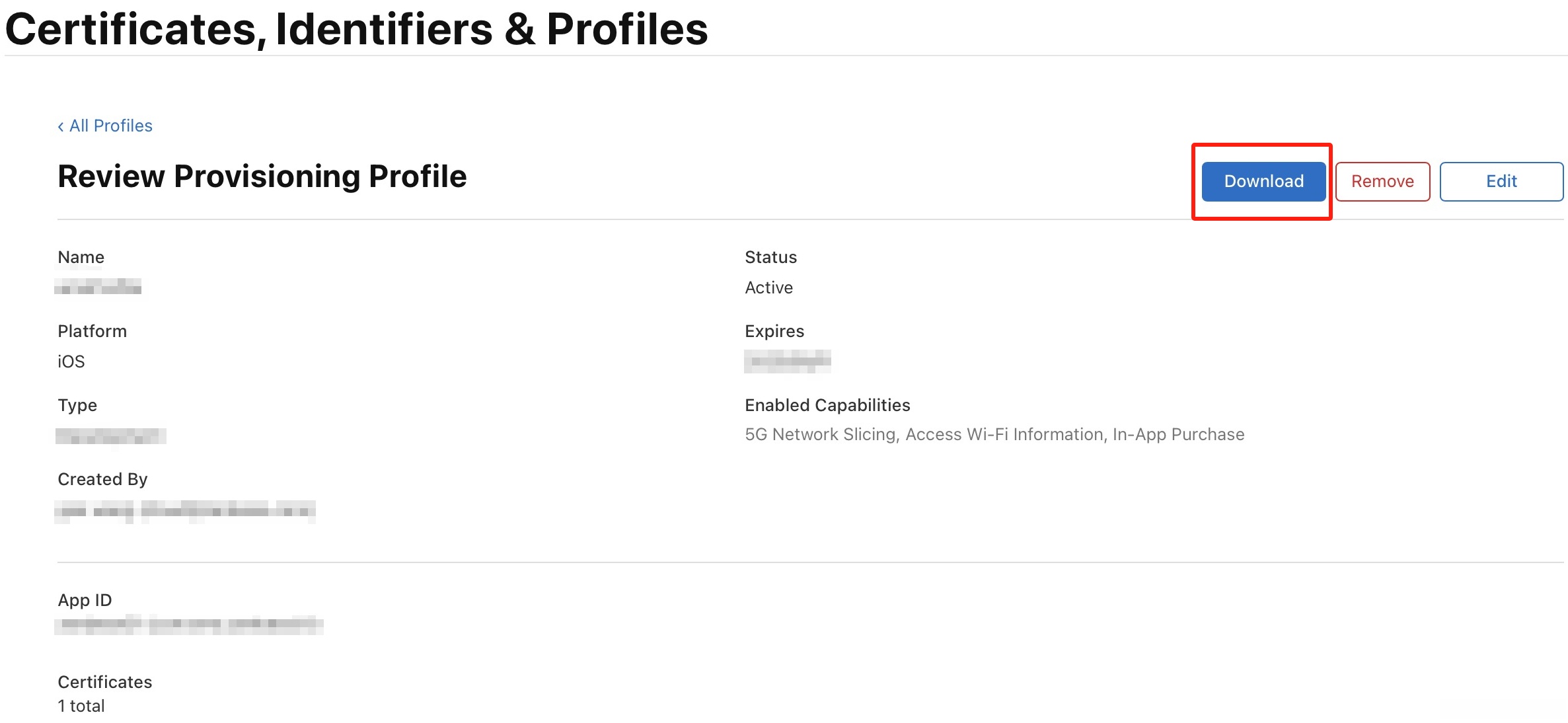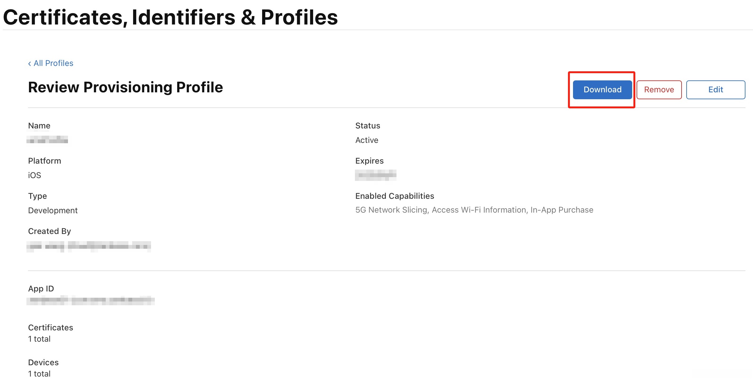 至此完成ios开发证书(.p12)及描述文件(.mobileprovision)的申请流程,现在可以使用Xcode打包并提交至TestFlight进行验证。