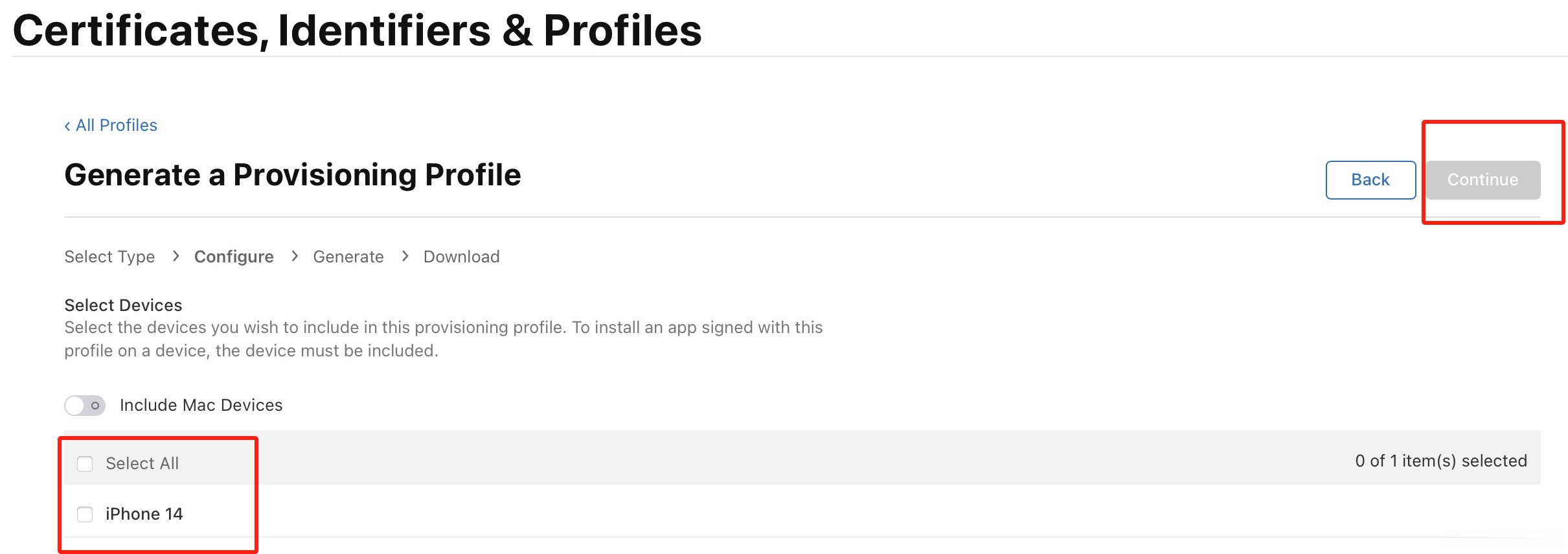 e、选择需要绑定的设备,建议全选 Select All --> Continue