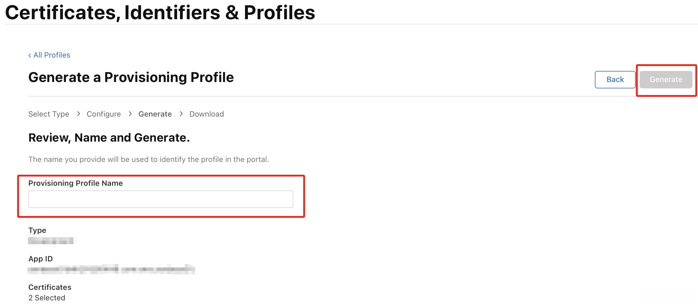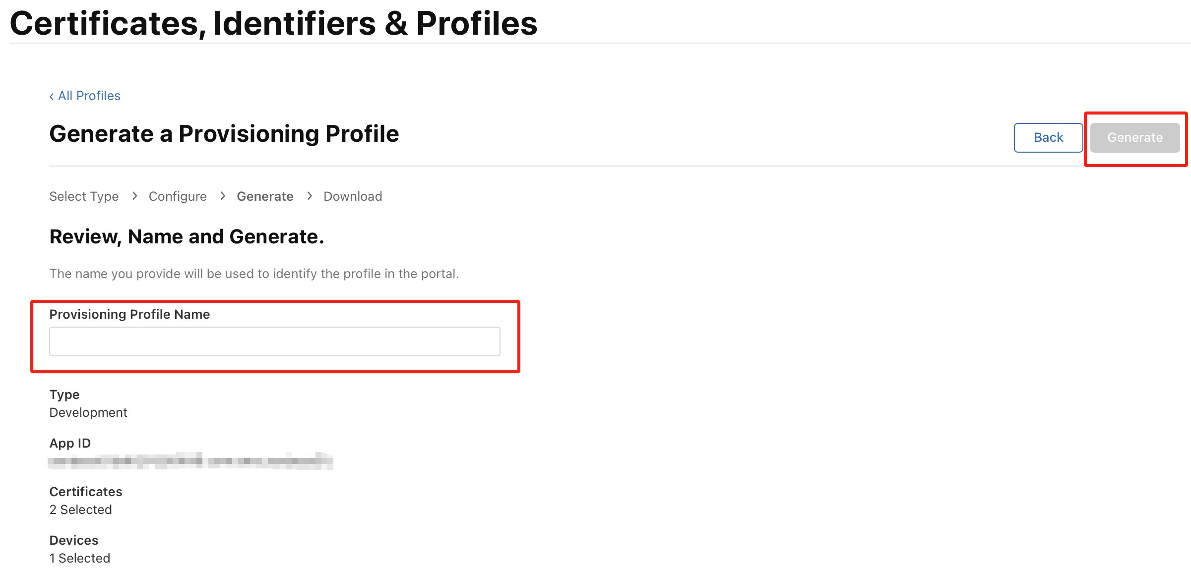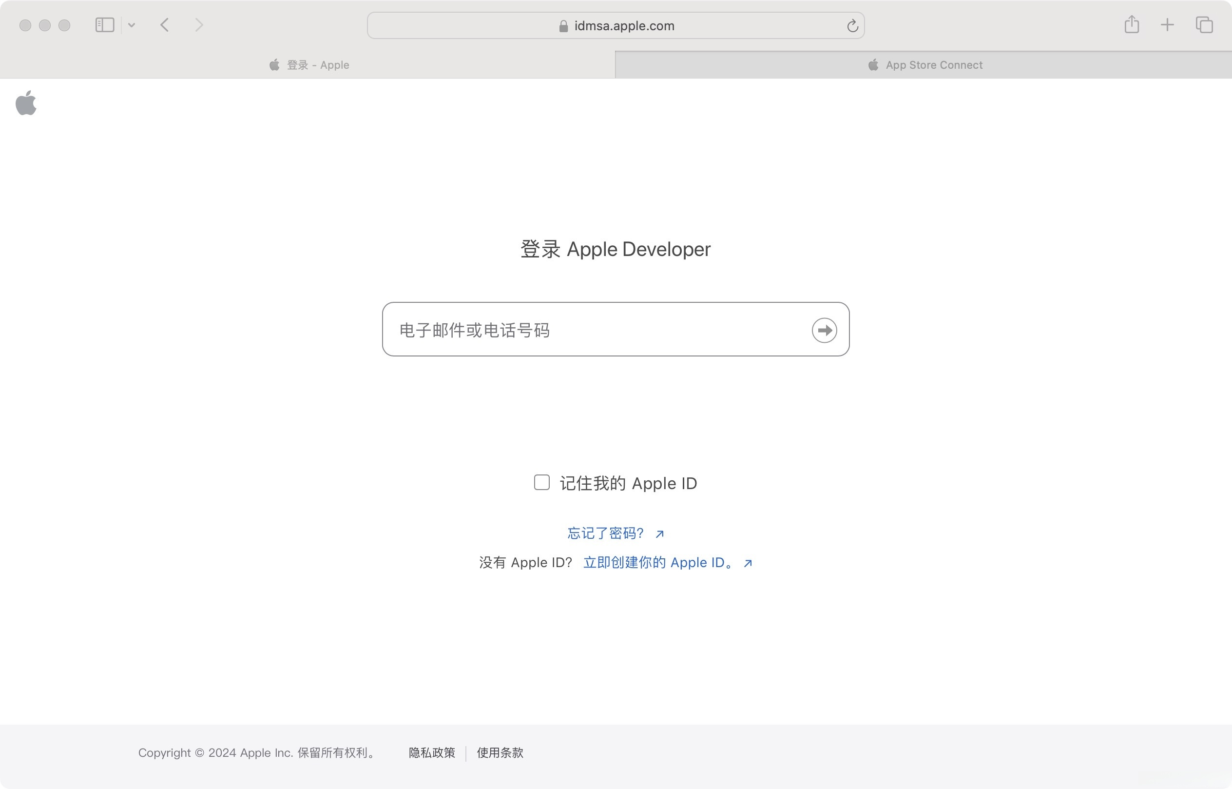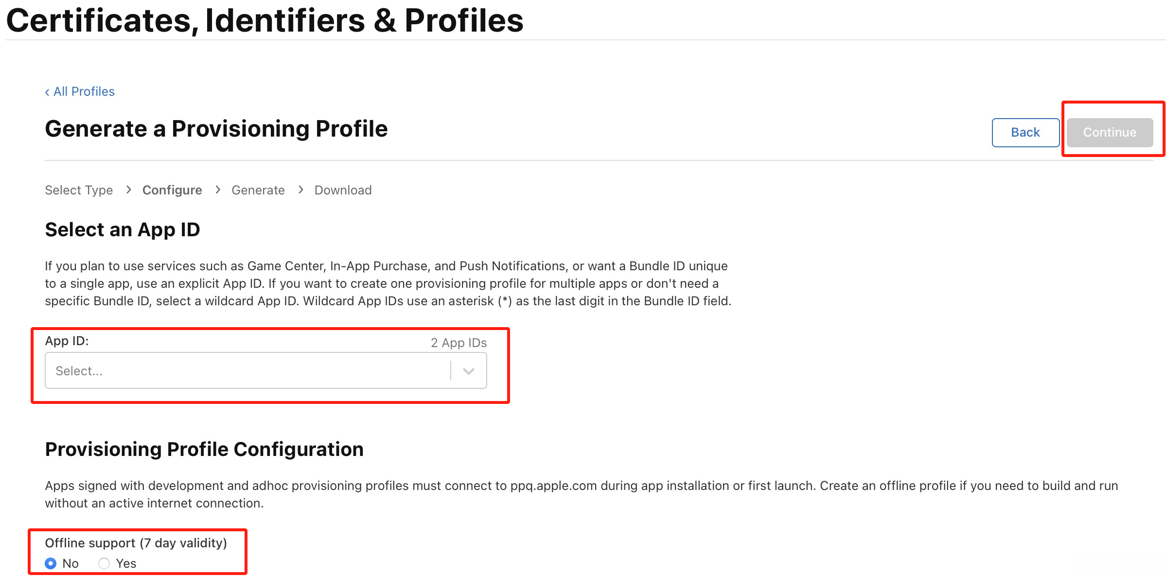 若未完成上述步骤,跳过此处后,请确保已申请过BundlelD(步骤一.3)和开发者证书(步骤一.4)。