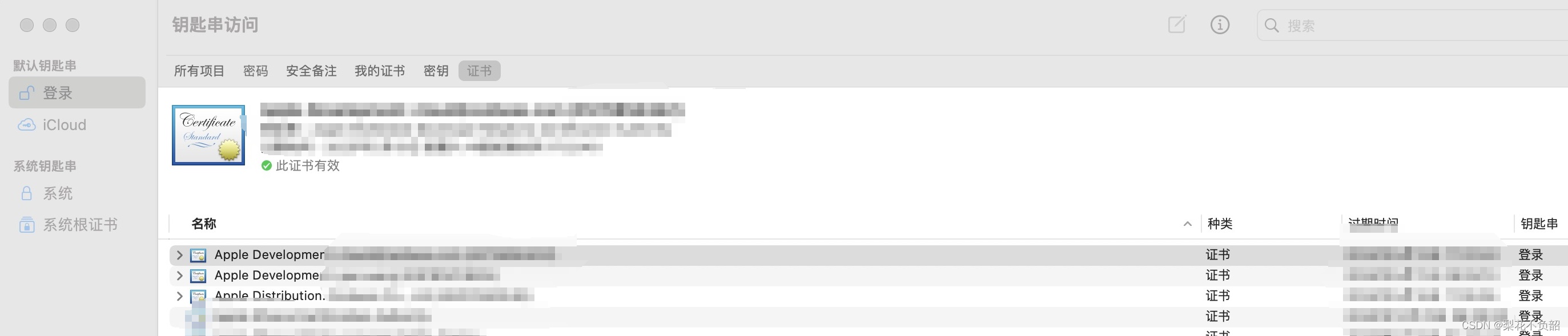 e、通过钥匙串再次打开应用并登录。操作步骤如下:首先,将上一步下载的证书拖入;然后,点击“证书有效性”按钮;验证通过后,操作将被视为成功完成。