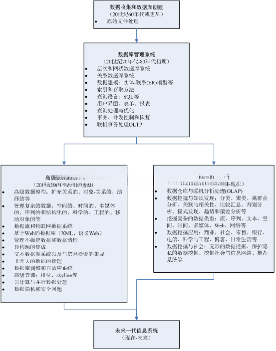 数据挖掘是一种高效的知识提取手段,在处理来自各个领域的大量散乱无序原始数据库时能够有效实现对潜在规律的精准捕捉与分析;通过不断优化算法模型并结合先进的计算技术体系,在这一过程中能够实现对复杂的大规模数据库的有效整合与管理;进而发展出数据分析库和数据分析技术;最终达到了对这些系统进行高效开发、充分利用以及持续优化的目的;如图所示
