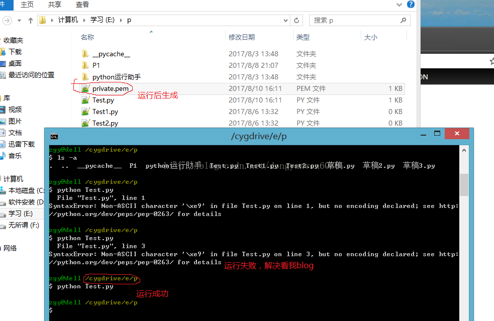 3.借助脚本工具,在给定参数p、q和e的情况下创建私钥文件private.pem, 该脚本仅限于Linux系统或其在cygwin环境下的Python版本运行,本人曾在Windows环境下尝试过