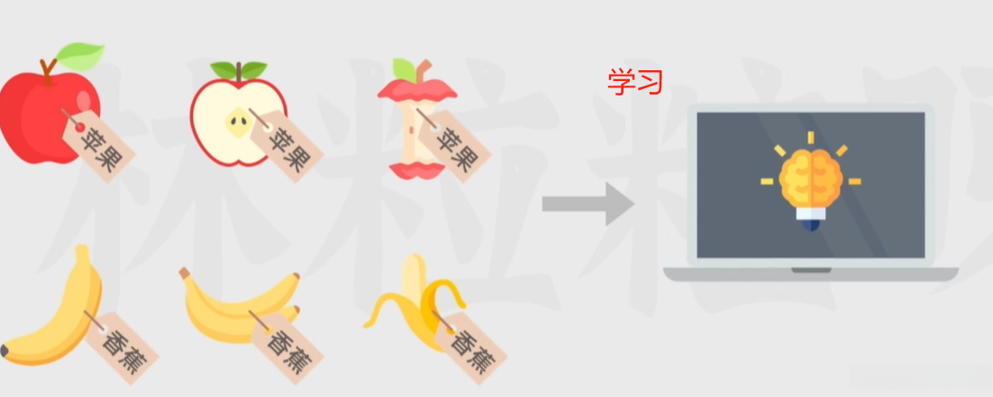 监督学习的工作模式:你拿着一个苹果和一个香蕉,告诉孩子:“这是苹果,它的形状是圆的,颜色通常是红色或绿色;这是香蕉,它的形状是长条形,颜色通常是黄色。”孩子会学习到特征与类别的对应关系,预测出新拿出的水果是苹果还是香蕉。