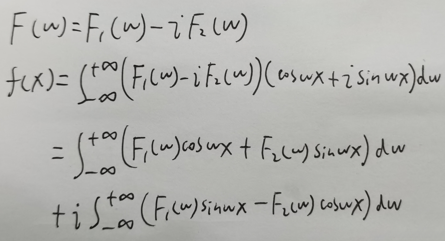 因为F1是偶函数,F2是奇函数,所以也能推导出f的虚部为0,最终得到: