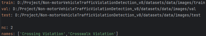 随后需要建立一个data.yaml文件用于管理训练数据的路径及模型需要进行检测的类别;该文件包含训练数据路径的信息以及模型需要进行检测的类别信息并会将读取这些信息以指导训练与验证过程