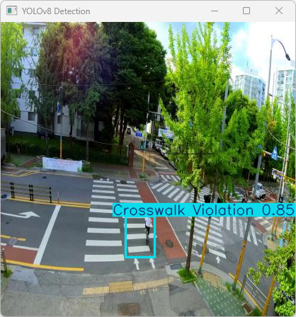 (1)该系统识别出"Crosswalk Violation"违规行为,并具有较高的推理效率。