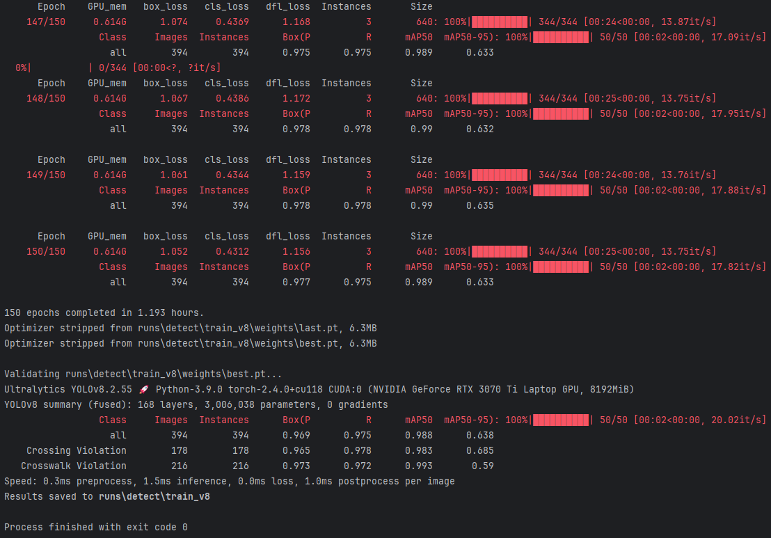 (4)将训练结果存储至命名为train_v8的目标目录下。