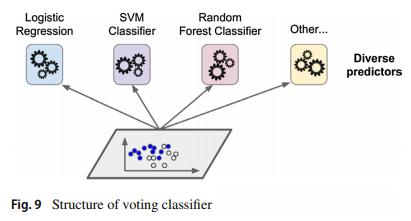 在硬投票分类器中,考虑每个类别的大多数选票。而在软投票分类器中,将预测类别的大多数作为概率 作为最终输出。当投票分类器的所有分类器都是独立的时候,由于每个分类器使用不同的训练方法,因此可以得到更好的结果。