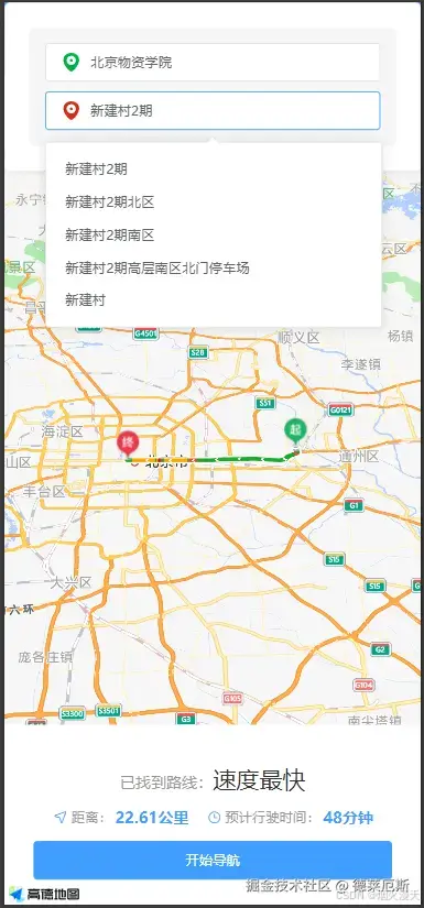 handleSelectStart 和 handleSelectEnd 函数 则检查是否起点、终点都有了,这样可以单独修改其中一个。修改后立即查询路线。