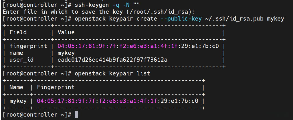 openstack keypair create --public-key ~/.ssh/id_rsa.pub mykey