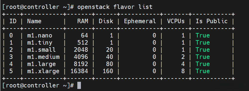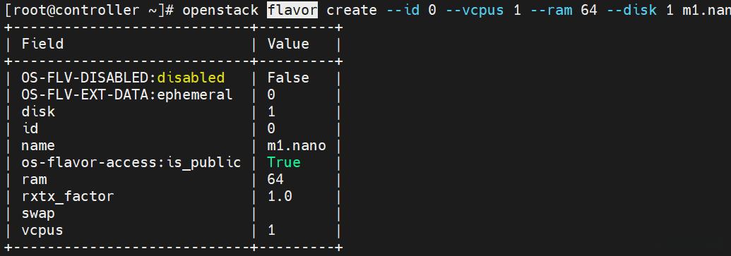 openstack flavor create --id 0 --vcpus 1 --ram 64 --disk 1 m1.nano