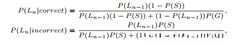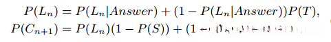 P(Ln)是在第n次学习交互中掌握KC的概率,P(Cn+1)是下一次学习交互中正确答案的概率。 P(Ln)是两个概率的和:(1)KC已经被掌握的概率;(2)知识状态转化为掌握状态的概率