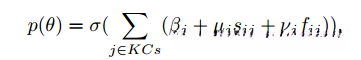 其中σ是sigmoid函数,Si是学生i的协变量,Tj表示KC j上相互作用次数的协变量,Kj是KC j的协变量,p(θ)是正确答案的概率估计。