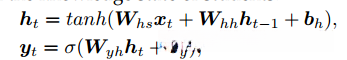 tanh是激活函数,Whs是输入权重,WWhh为循环权值,Wyh为读出权值,bh和by为偏置项。
