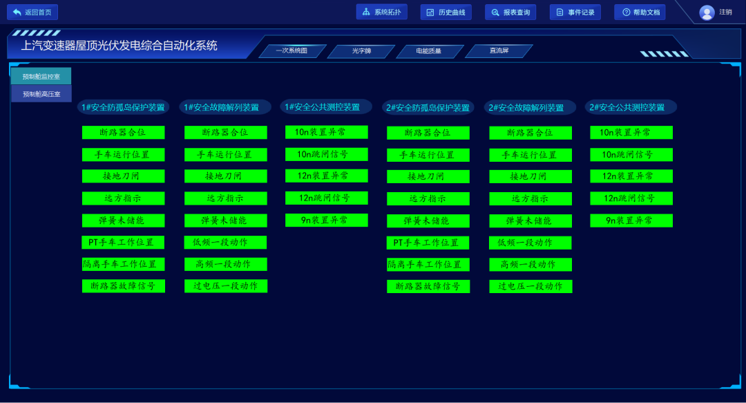 光字牌可以显示电力系统中设备的运行状态和系统的重要信息,为运行人员提供清晰的状态指示和警示信号,包括二次设备的异常、跳闸信号,开关柜断路器的分合位、手车位置、接地刀闸等信号。