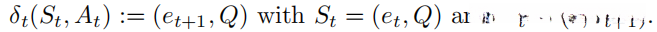环境通过根据先前的动作更新状态来确定性的进化。形式上,过渡函数为: