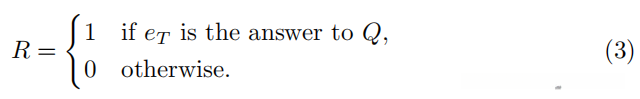 Environment:场景图SG中的代用品S的状态空间是由其所在的实体集合E与问题集合Q共同决定的。对于任意时间t来说,在此系统中定义的时间t的状态St则由代理当前所处的实体et及其相关的查询Q组成。具体而言,在时间为t时的状态St表示为St=(et,Q)。从状态St出发可获得的操作集合用ASt来表示,并且该集合包括从每个节点et出发的所有可能行动以及对应的对象节点。值得注意的是,在场景图SG中每个产生NO_OP标签的节点都包含自循环边这一特性;这种自循环边则使代理能够在达到答案节点时保持当前位置不变。此外,在系统设计中我们还引入了逆关系这一概念;通过引入逆关系后,则使得代理可以在两个节点之间自由地进行信息传输