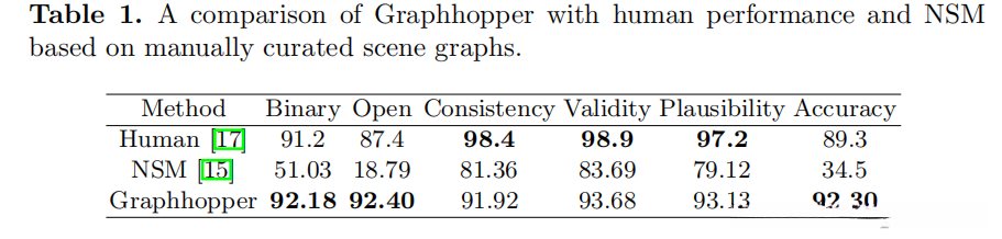 (4)通过人工管理与自动化生成相结合的方式生成场景图,在这种情况下证实了Graphhopper超越现有的神经状态机(NMS),后者是当前领域内最先进的场景图推理模型。