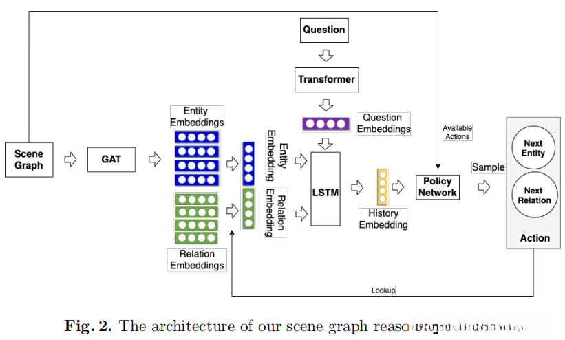 VQA任务被视为场景图遍历问题的一种,在起始节点开始,并按顺序访问相邻节点;通过补充现有路径上的转移使推理链逐步扩展,在定义代理决策之前引入符号.