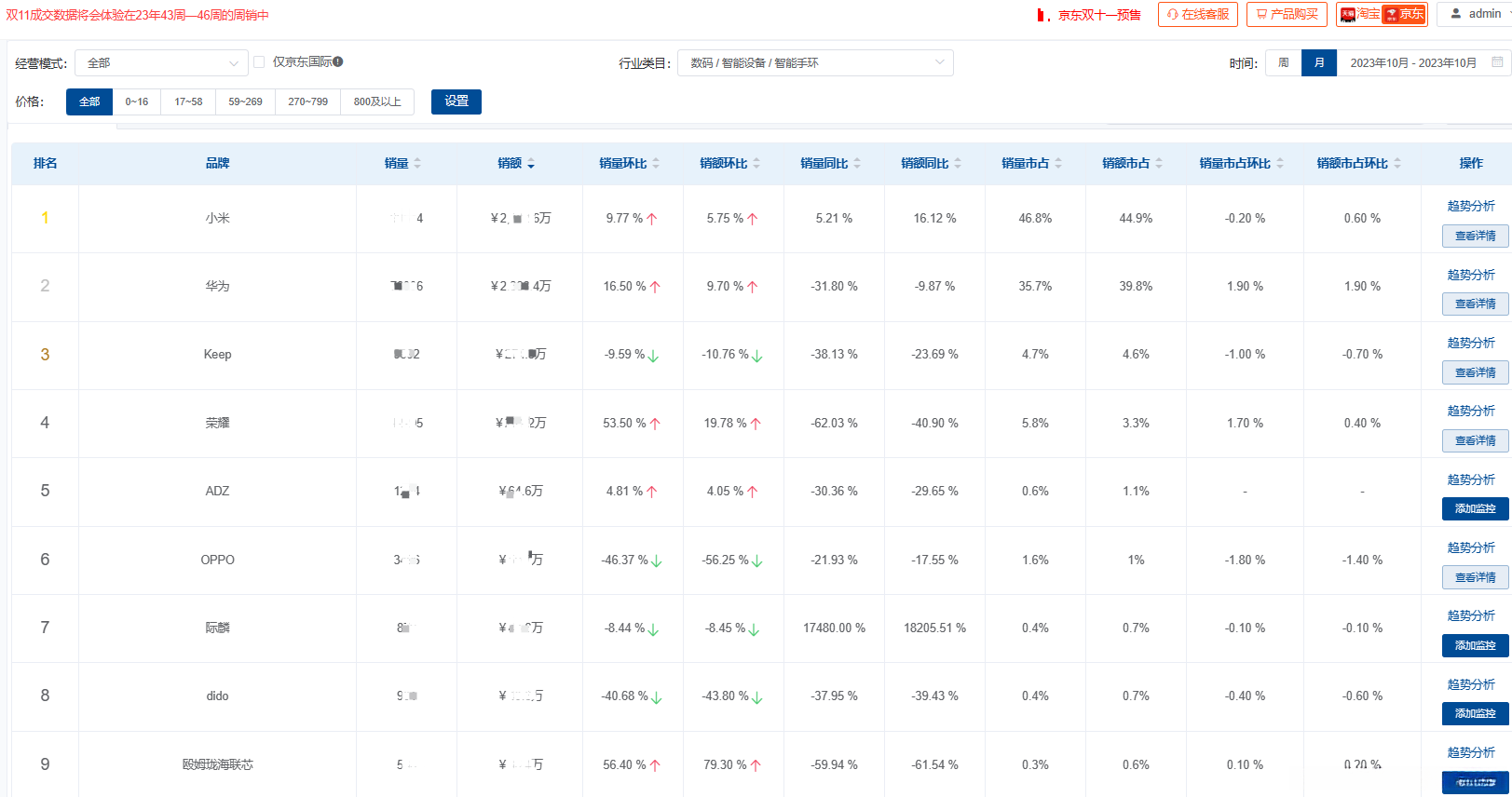 如想要查看京东(淘宝/天猫)全品类的销售数据(行业/品牌/店铺/商品/监控),欢迎搜索“鲸参谋电商数据”,或者直接评论留言和私信(也可接口对接)~