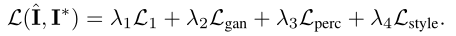 [损失函数]()主要由L1 损失、对抗 损失、风格损失和感知损失构成,